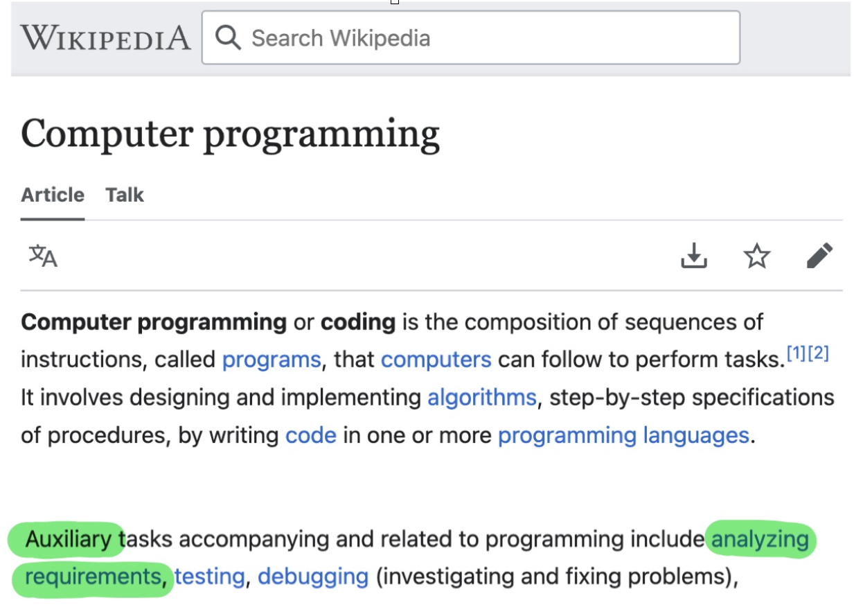 Maar de losse argumenten unpicken is eigenlijk zinloos, want hoe meer ik nadenk over het stuk, hoe meer ik erachter kom dat AI liefhebbers en ik het niet oneens zijn over AI, we zijn het oneens over programmeren. En dan is het logisch dat we het ook niet eens zijn over hoe AI kan helpen bij programmeertaken.