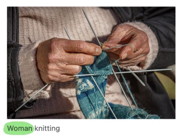 Superbelangrijk natuurlijk om bij deze foto van alleen handen echt even te vermelden dat dit een vrouw is! We zouden nog eens gaan denken dat mensen van alle genders kunnen breien.