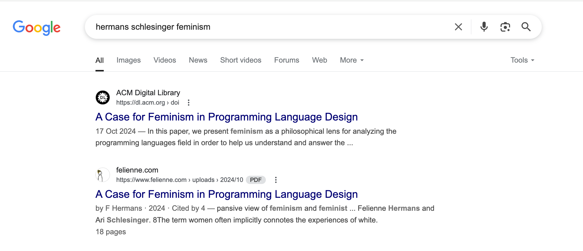 Google lijkt trouwens ook weer gestopt! Zoeken op "hermans schlesinger feminism" gaf twee weken geleden nog een ongevraagde samenvatting en nu niet meer.