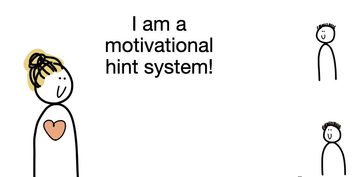 Ik, zei ik, ben een motivational hint system. Wat ik doe als docent is steeds maar weer voor iedere leerling aan het bedenken wat voor hint ze nodig hebben.