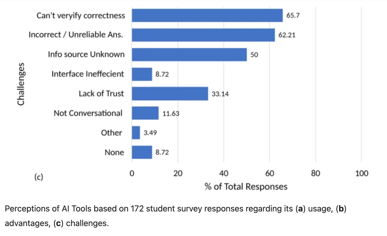 Als je studenten zelf vraagt of ze graag met AI werken, ja, zegt 67%, het geeft ons wel toegang tot meer informatie, maar ze zijn zich ook zeer bewust van de risico's op verkeerde of onbetrouwbare feiten.