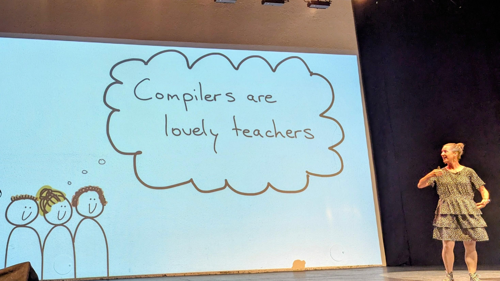 In mijn praatje in Manchester had ik het ook weer over hoe ik als kind leerde programmeren, door eindeloos BASIC-codes over te typen, en mijn compiler (het stuk van een programmeertaal dat de code vertaalt zodat de computer het kan lezen) als leraar gebruikte.