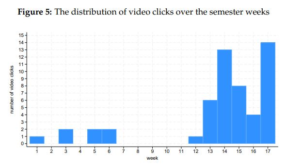 De voorbeelden zijn eindeloos, vorige maand verscheen er weer een paper dat aantoonde dat studenten video's laten kijken in plaats van echte colleges (LeKKer EFfiCieNt!) niet helpt. In München hebben wetenschappers twee versies van hetzelfde vak bekeken, eentje met echte colleges en eentje met videos. Verder leken de vakken zo precies mogelijk op elkaar. En helaas, studenten die de videos keken deden het 11% slechter (0.44 standaarddeviatie verschil), en dat verschil was nog groter voor studenten die het op de eerste toets slecht deden. En waar lag dat vooral aan? Nou, dat maar 25% van de studenten de videos uberhaupt bekeek! En de studenten die dat deden deden dat niet gedurende het semester verdeeld, maar, je verwacht het niet, de laatste weken voor de toets.