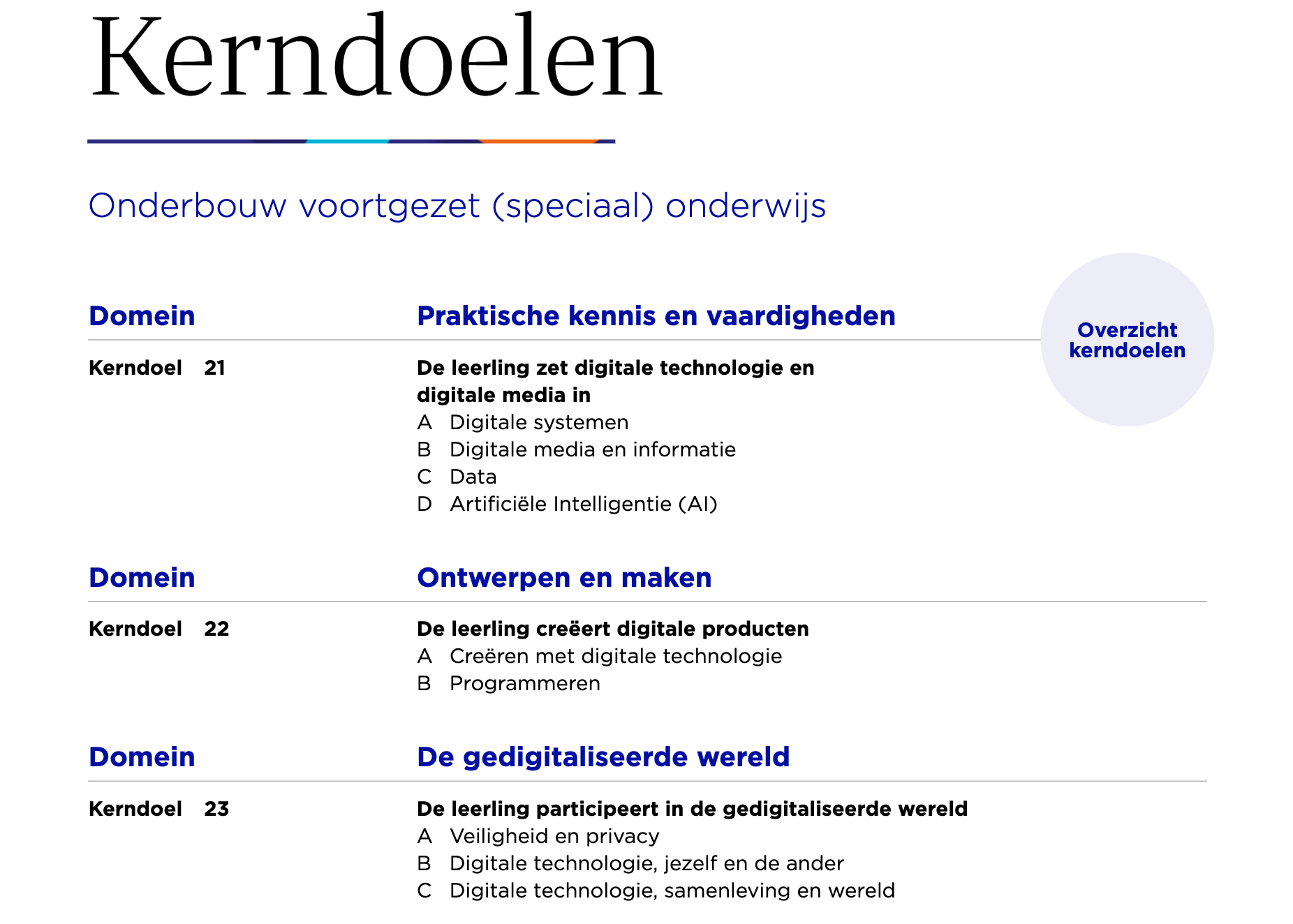 De nieuwe kerndoelen voor digitale geletterdheid zijn door de Tweede Kamer goedgekeurd, doelen waar ik in 2022-2023 ook aan heb mee mogen schrijven. Alle leerlingen in de onderbouw van de middelbare school moeten straks aan deze dingen gaan werken (en ook op de basisschool gaan ze vergelijkbare dingen doen).