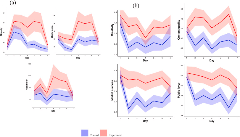 Maar let goed op, na 5 dagen mochten ze geen AI meer, dus de drop die je daar ziet is de afkickperiode. En de oplossingen waren dan wel creatiever, maar ook... heel vaak hetzelfde: "Results showed that the use of ChatGPT substantially increased the homogeneity of participants’ outputs, both in terms of content similarity and linguistic style similarity, during the five-day intervention period"