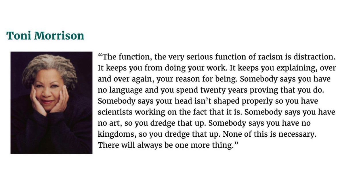 Het is zeer verleidelijk om te denken dat dit allemaal wel meevalt, dat de rechten die we nu hebben als, bijv. vrouwen in de wetenschap verworven zijn en nooit meer kunnen worden afgenomen, en dat we nu met genoeg zijn om deze ellende te counteren. Maar vergeet niet dat het moeite kost om hier steeds weer over te rapporteren, ik had het afgelopen uur ook aan onderzoek kunnen besteden ipv deze column. In de onsterfelijke woorden van Toni Morrison:
